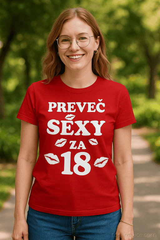 Rdeča barva, drzen bel napis in kup poljubčkov so recept za nasmehe, komplimente in kakšno zavistno oko. Če si poln/a samozavesti (in šale nase), je to tvoja nova najljubša majica. Ne glede na številke na koledarju – karizma nima datuma!