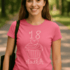 🍓 Pozor, sladkorni šok! Živo rožnata majica s krepko belimi črkami z rdečim obrisom SWEET 18 razglasi: polnoletnost je tukaj!
