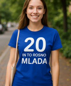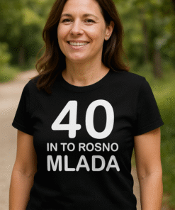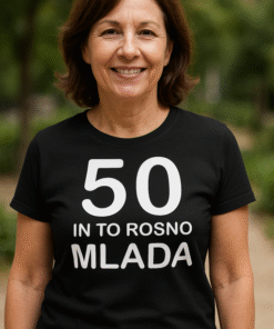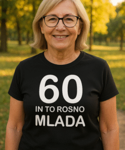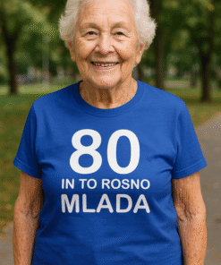 Ta modra ženska majica s kratkimi rokavi in belim potiskom spredaj nosi sporočilo “BABICA ima SREBRO V LASEH IN ZLATO V SRCU” ter srček, ki pove “objem obvezen”. Za babice, ki pečejo najboljšo potico, delijo najmodrejše nasvete in imajo vedno prostor za še en objem.