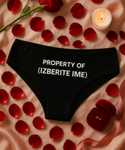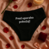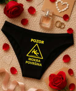 Ker je včasih nagajiva iskra humorja najboljši uvod v zabaven večer. Ta drzen, a simpatičen napis na črnem perilu pove vse brez zadrege in poskrbi za smeh še preden pade prvi poljub. Popolno za samozavestne dame in partnerje, ki cenijo igrive namige.